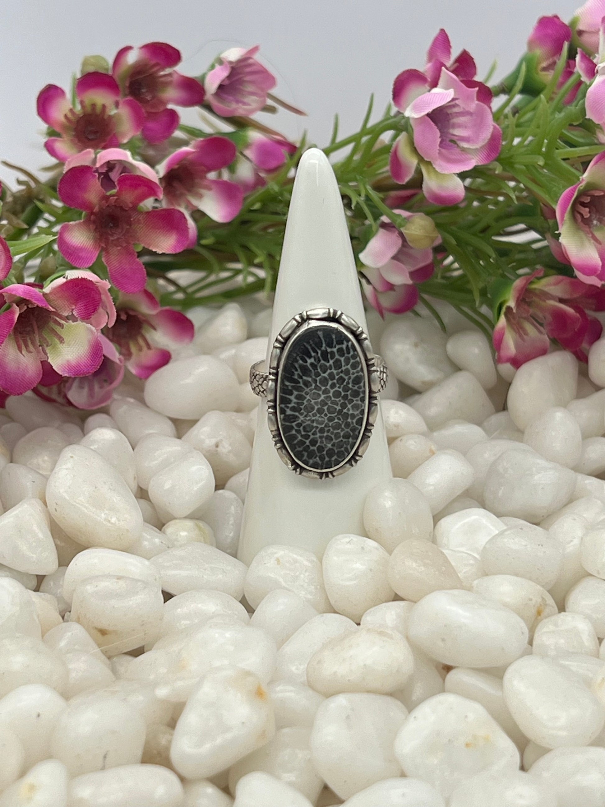 Dinosaur Bone Fossil Large Oval Statement Ring - Size 8